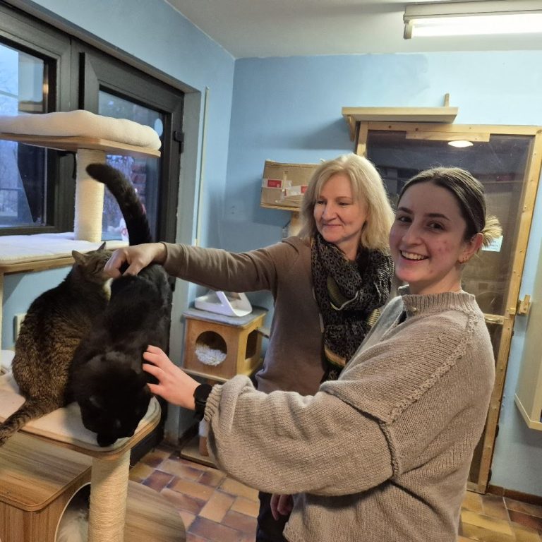 Die symbolische Scheckübergabe fand am 16. Januar 2026 in unserem Katzenhaus in Hattingen statt. Natürlich hatten Melissa und Elke auch Gelegenheit, die Katzen kennenzulernen. Derzeit leben hier 20 Katzen inkl. der Hospiz-Katzen.