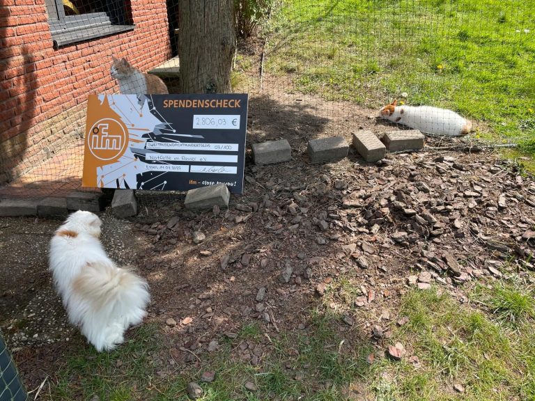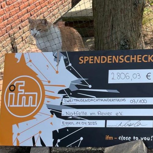 unseren Vereinsstandort für Katzen in Hattingen. Zur ifm-Unternehmensgruppe zählen ca. 7.400 Mitarbeiter*innen in 70 Ländern weltweit, deren Aufgabe die Herstellung und der Vertrieb von Systemen sowie Komponenten der Automatisierungstechnik für Industrieunternehmen ist (Quelle: Wikipedia). Die drei Auszubildenden übergaben einen symbolischen Riesenscheck an die 2. Vorsitzende Karin Bürger. Der Wahnsinnsbetrag