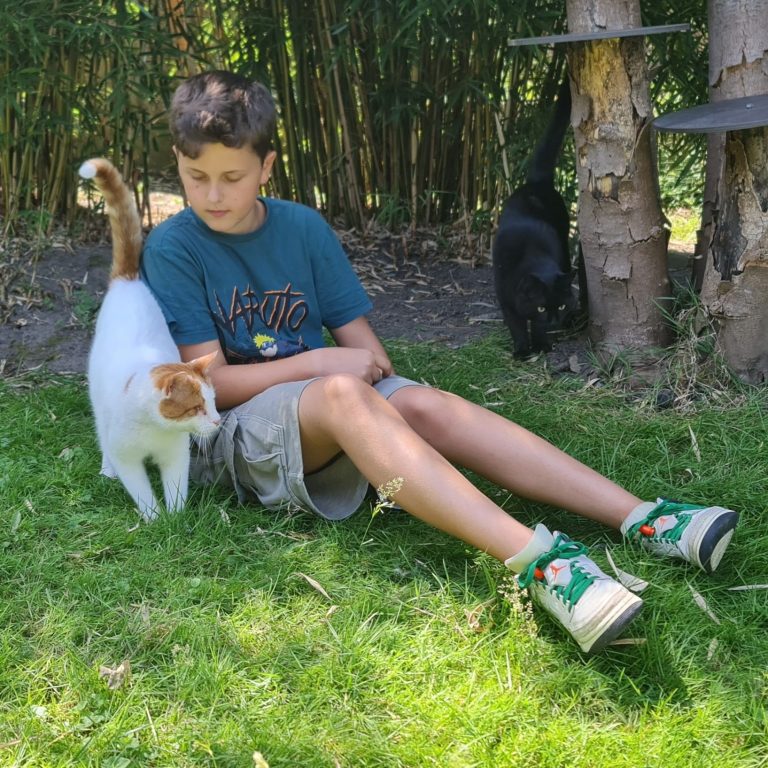 So verbrachte eine völlig aufgeregte Bente einen Tag nach ihrem Geburtstag -nach einer Einführung über die Geschichte der Katzen- fast 3 Stunden mit den Katzen, mal beim Schmusen in den Räumen, mal beim Spielen im gesicherten Garten. Dieses glückliche Gesicht, als sie eine Katze im Arm halten durfte, war auch für mich großartig❤️ .