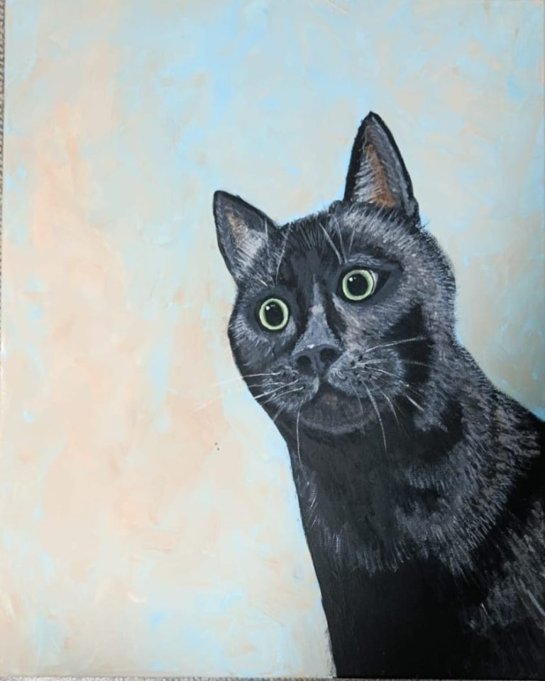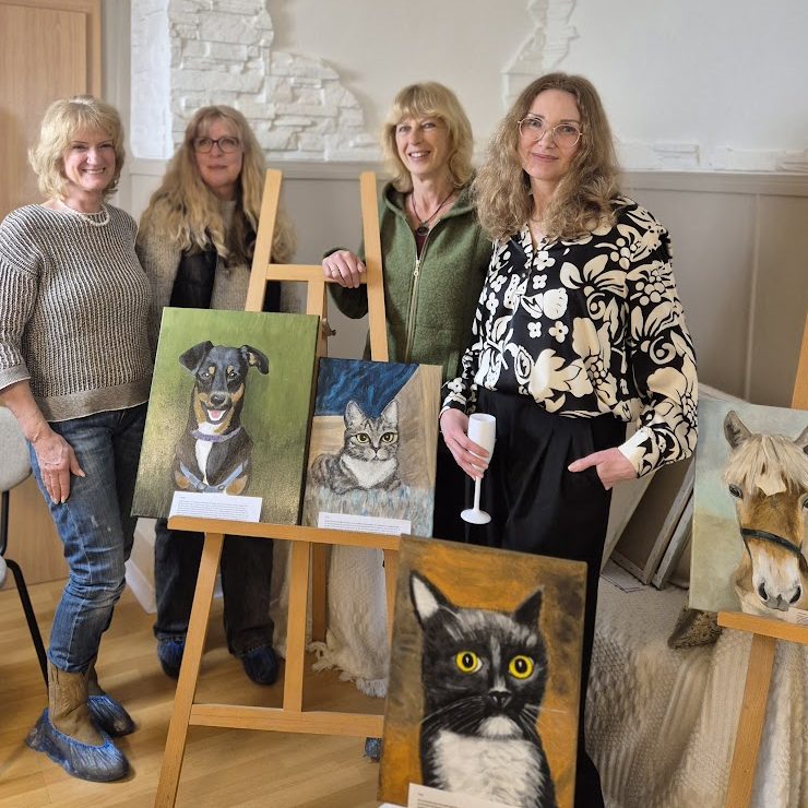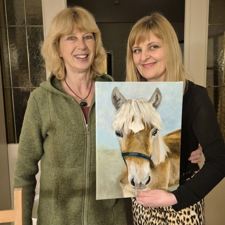 In Absprache mit Karin sagten wir diese besondere Malaktion zu und schickten ihr jeweils die Fotos von 6 Katzen und 6 Hunden sowie von unserem geretteten Hengstfohlen Abendstern. Innerhalb eines Monats wurden dann alle von den Damen gemalt und wir wurden immer wieder über die Entstehung der Werke auf dem Laufenden gehalten, waren sehr erstaunt, wie gut die Bilder am Ende geworden sind!