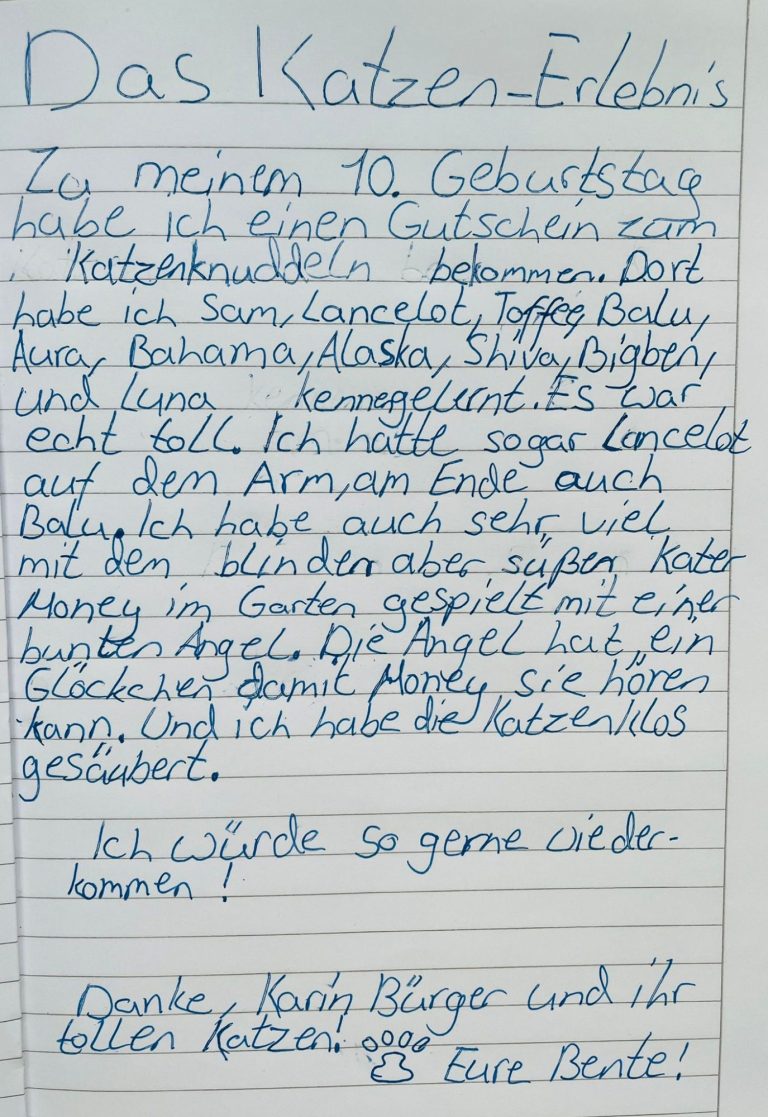 Nach ihrem Besuch schrieb Bente einen tollen Dankesbrief ... und ich glaube, die Katzen werden Bente bald wiedersehen ...