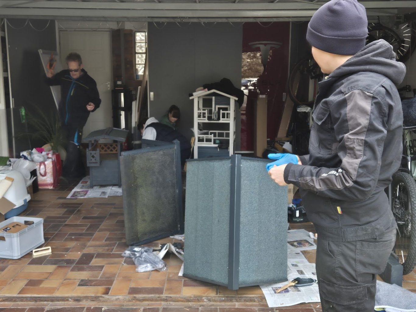 oben: Elke und Melissa helfen bein Zusammenbau eines Laufrades.